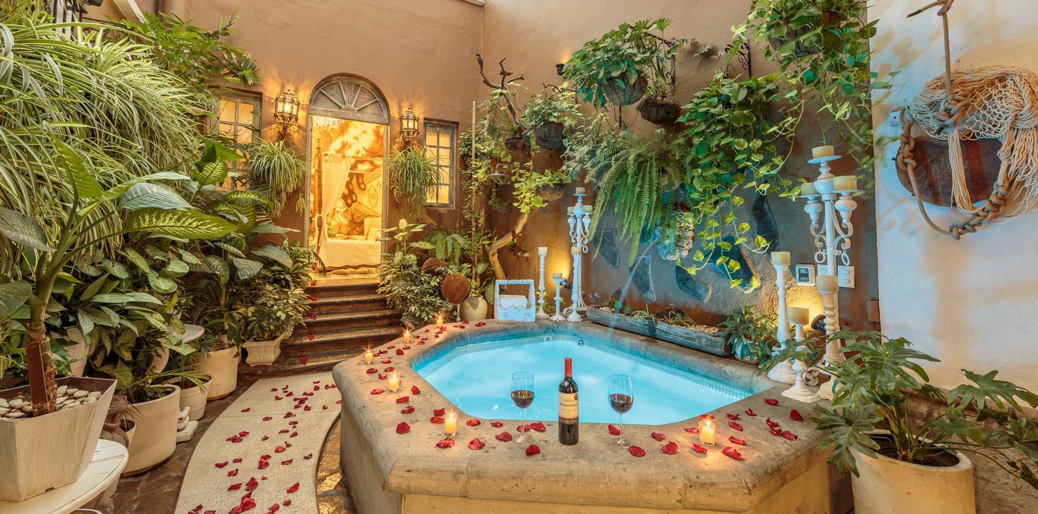 Disfruta tu noche de bodas con una botella de vino en la mejor habitación.